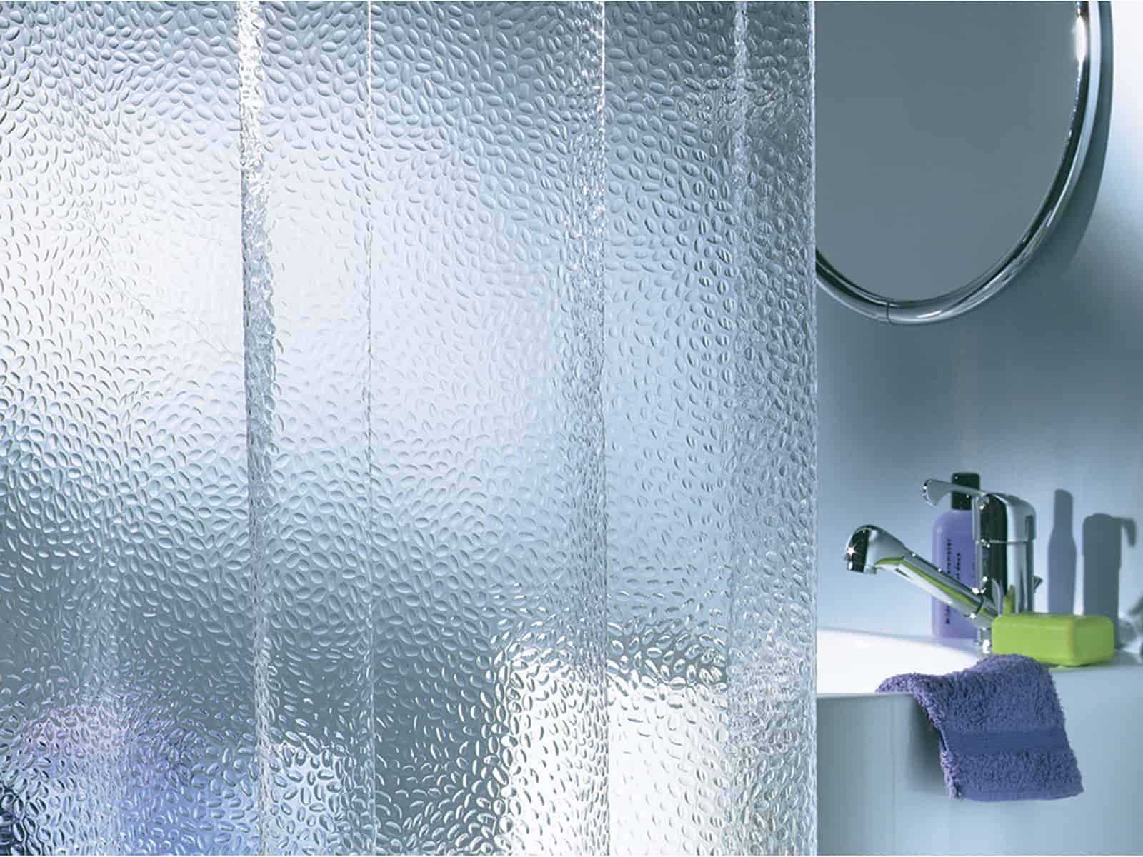 Если ткань быстро изнашивается и нуждается в просушке после каждого принятия душа, то стекло лишено этих недостатков. Из него изготавливают прозрачные шторы для ванн – визуально легкие конструкции, которые не загромождают интерьер и считаются показателем стиля. При изготовлении таких занавесок используется поликарбонат и триплекс с ударостойким покрытием.