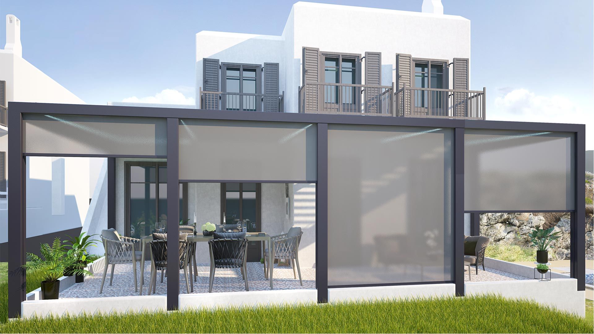 В большинстве случаев, зип-системы представляют собой вертикальные конструкции, укомплектованные фурнитурой и тканым полотном. Для чего их устанавливают на веранду или в беседку: