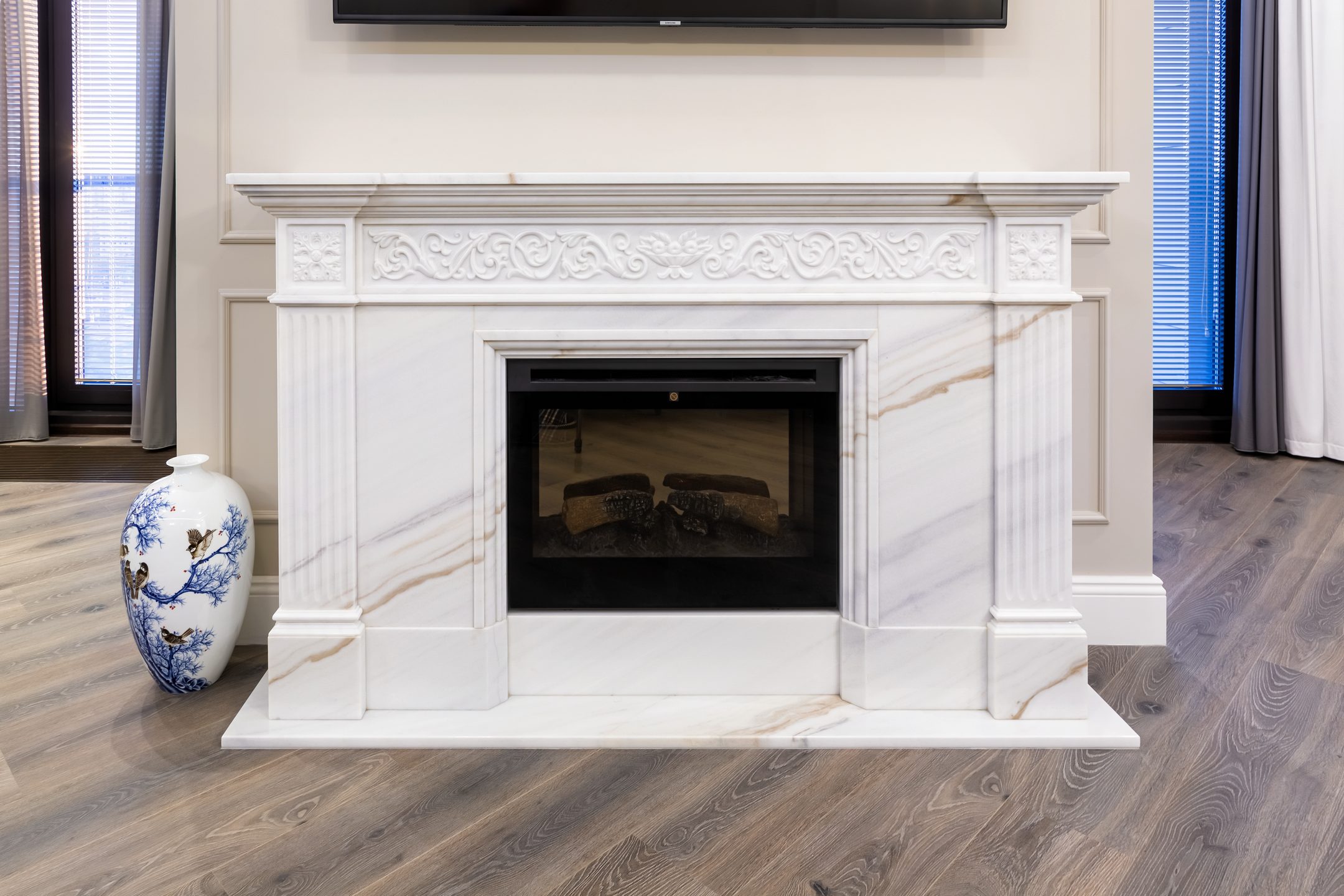 В каких интерьерных стилях камины из мрамора используют чаще: